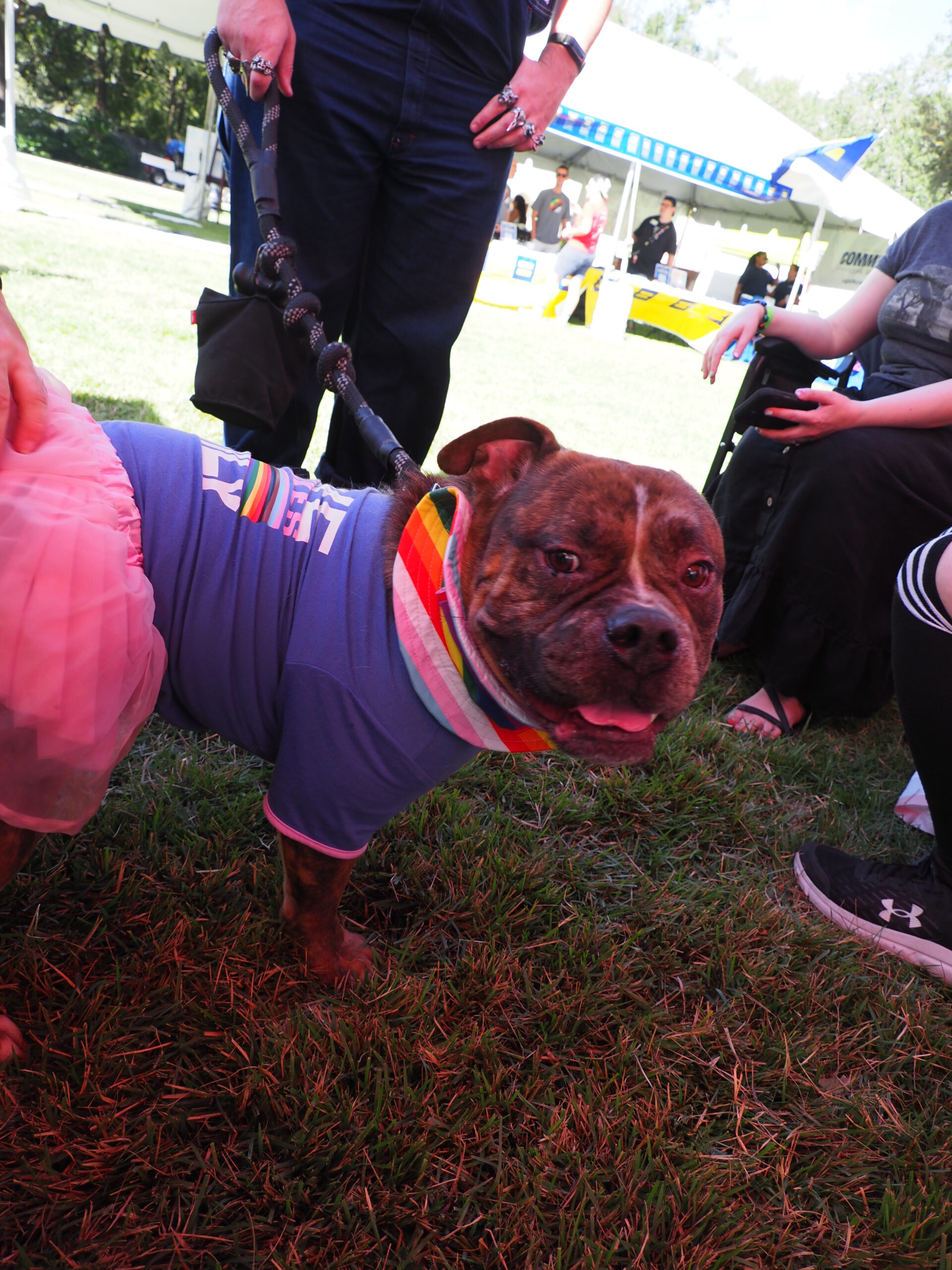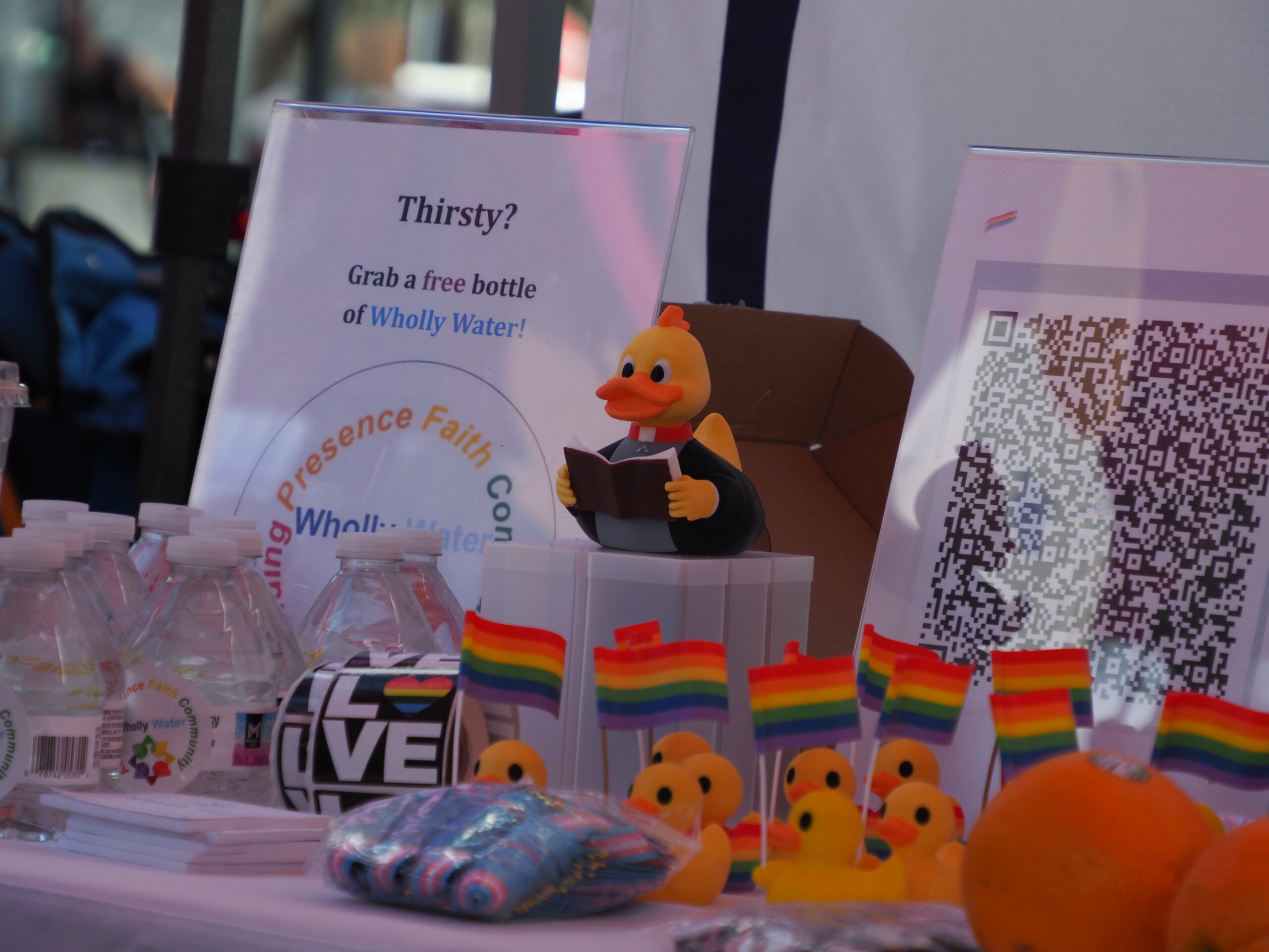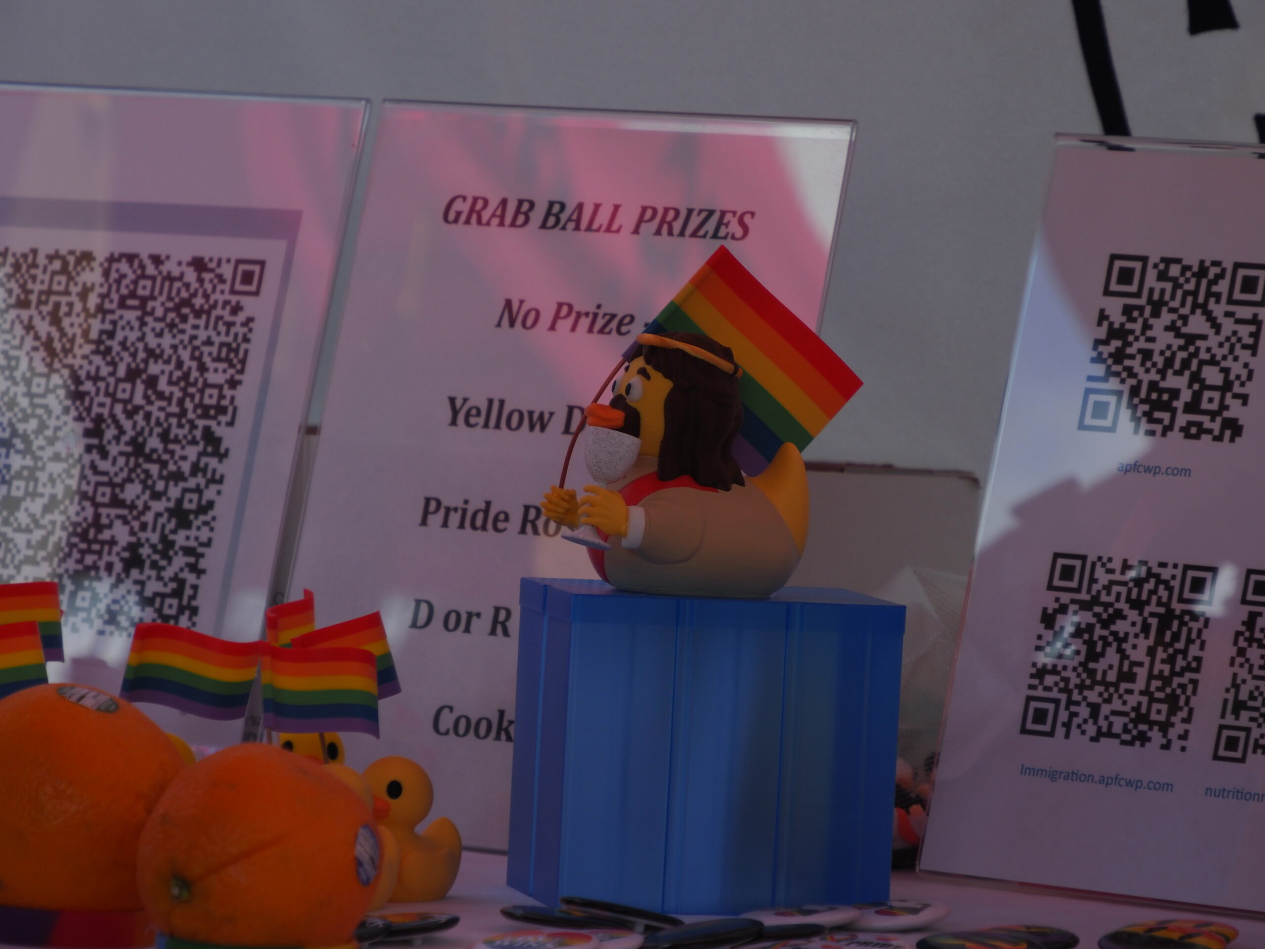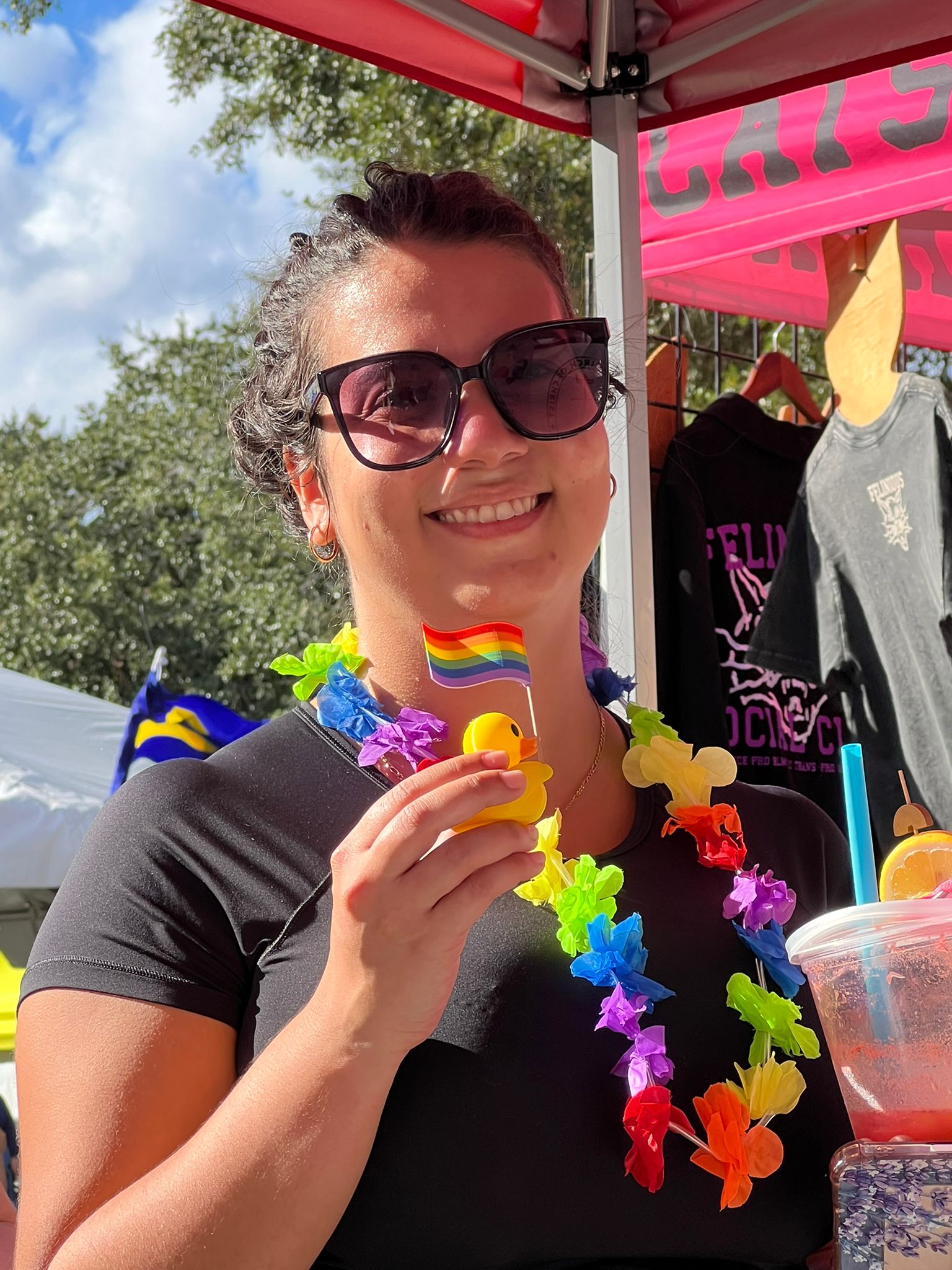 To rainbow flags in sun and rain,